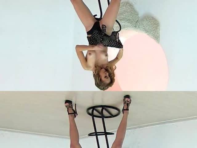 Breathtaking Golden-Haired Masturbates Upside Down in Chair