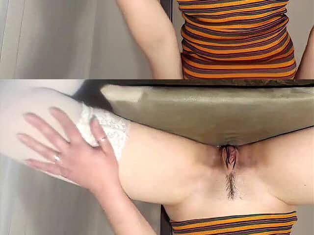 Allison sits on a chair and slides her hand inside her pink panties to please her cunt