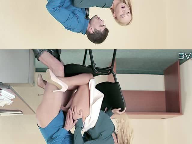 Elegant blonde babe in sexy outfit, insane porn standing and screaming