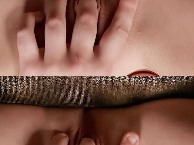 Sweet brunette in black fishnet Vanessa Y. opens her hungry crack