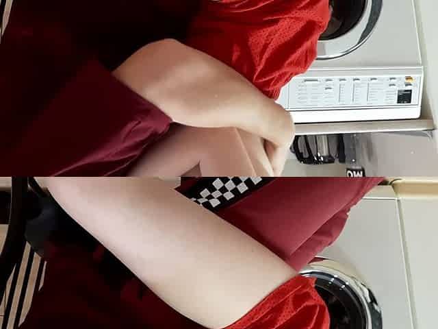 Lisandra shows off her hairy body on her red chair