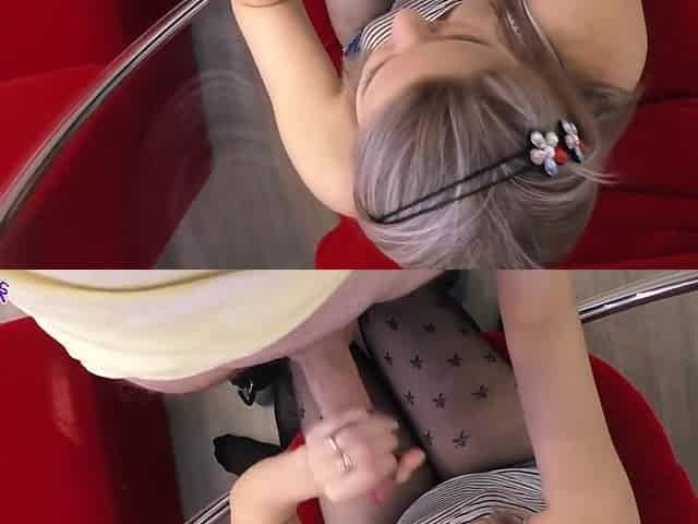 Camera goes Under her Transparent Chair without any Panties and in a White Summer Dress