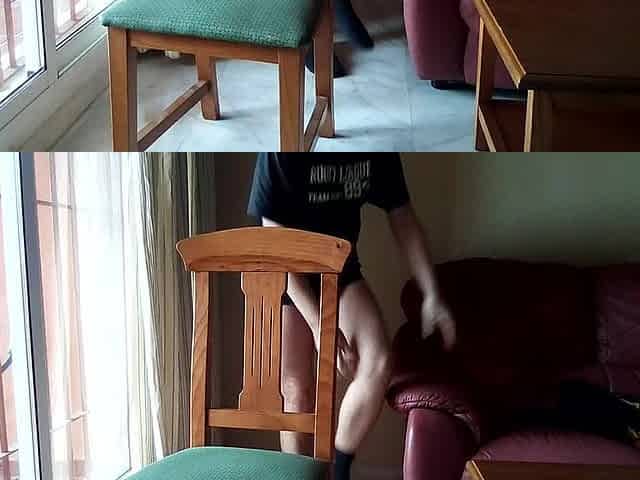 Sexy teen gets her tight pussy and ass fucked on the table and chair by muscular guy