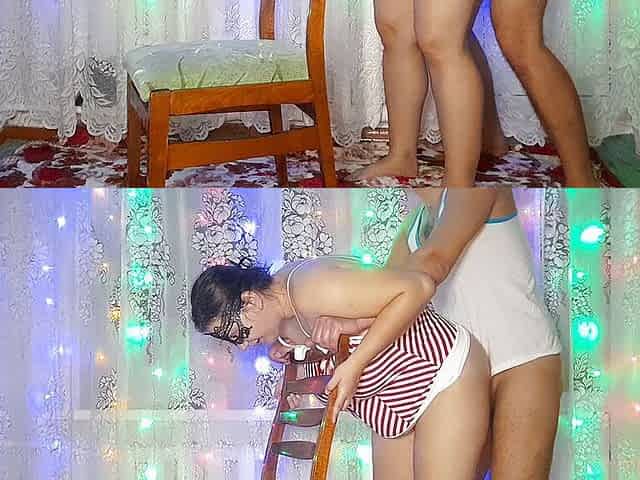Jumping on his dick on a chair and then he fucks me from behind and creampied me - ProgrammersWife