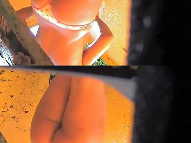 voyeur dressing room: pretty girl stripping out of bikini