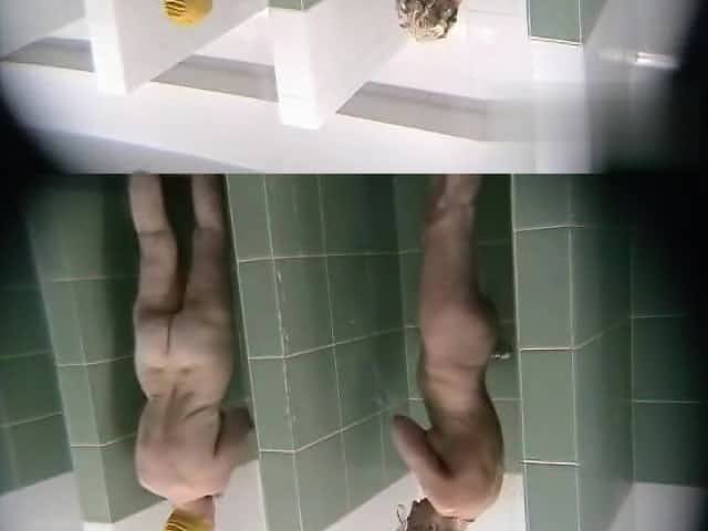 Chubby fem bends over shaking boobs on spycam in shower