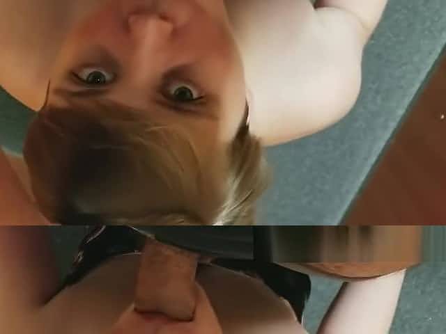 Naughty German Blonde Gives Head in a Dressing Room
