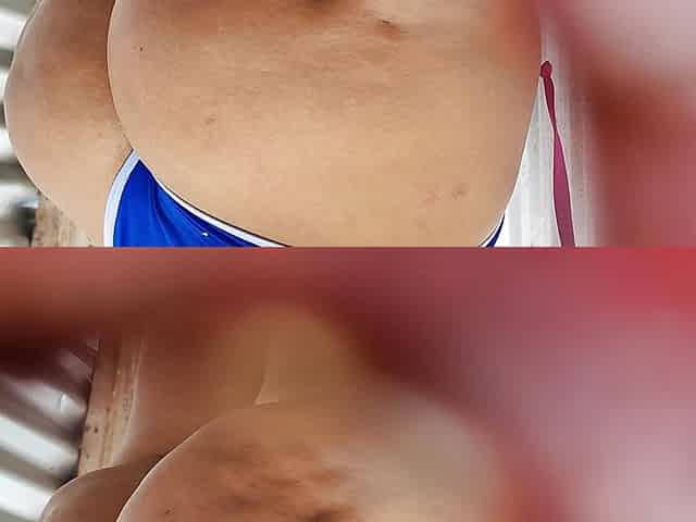 Thick voluptuous hotty discovers the camera in the outdoor dressing room