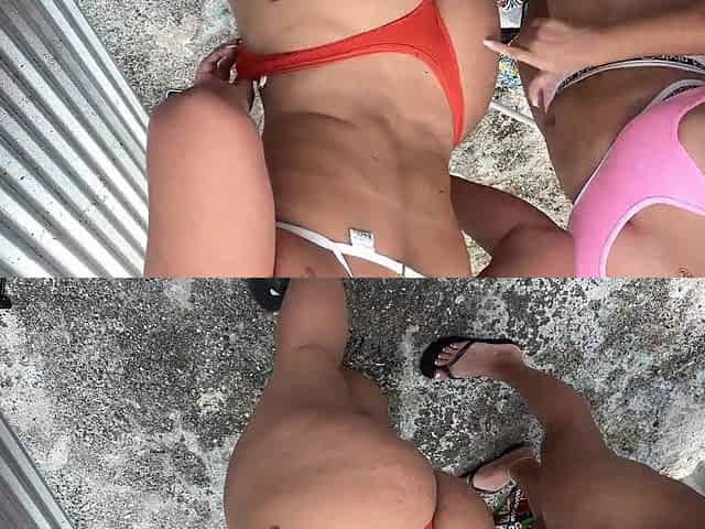 Filming glamorous hotties in the beach dressing room