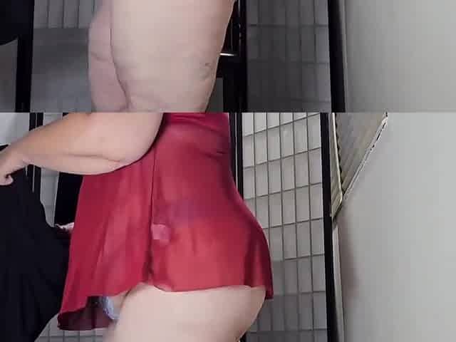 My wife is trying on things in the public changing room, filming herself on camera,getting lascivious.