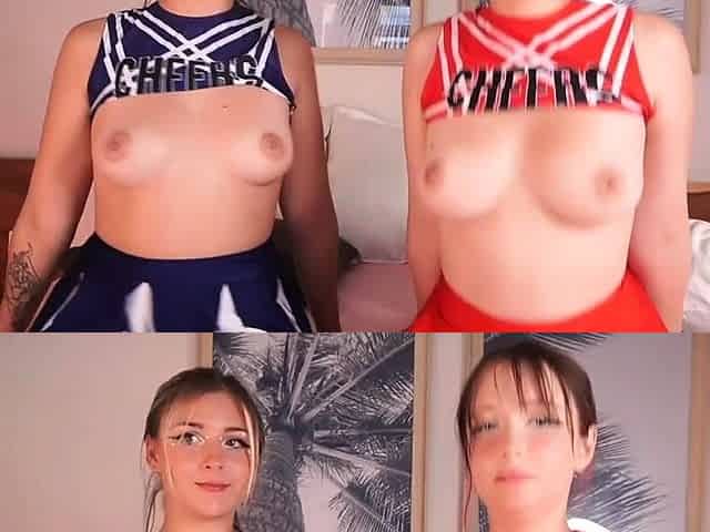 Busty Teen Cheerleaders Double Showoff