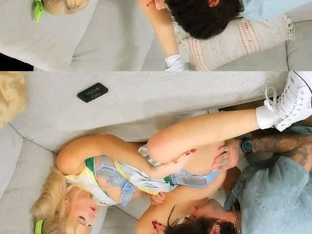Double Win: Teen 18+ Cheerleaders Take Turns Fucking Swallowing