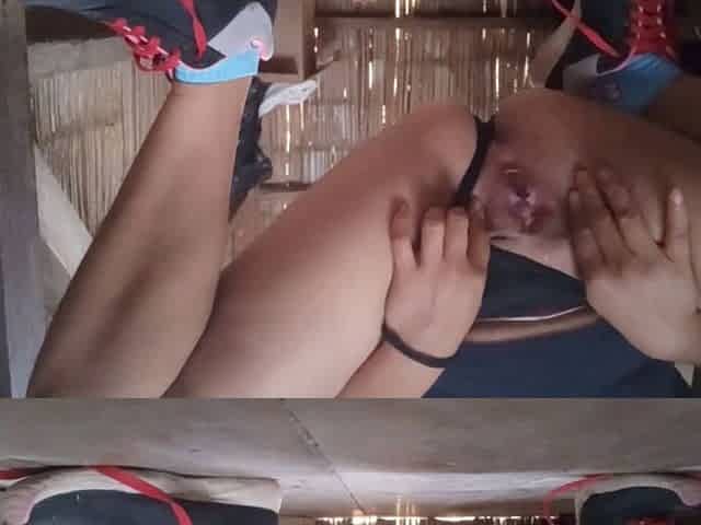 "Teen teases me with her feet while she rubs her young Lil pussy"