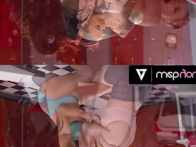 Teen cheerleaders Eliza Ibarra and Coco Lovelock explore domination in the locker room