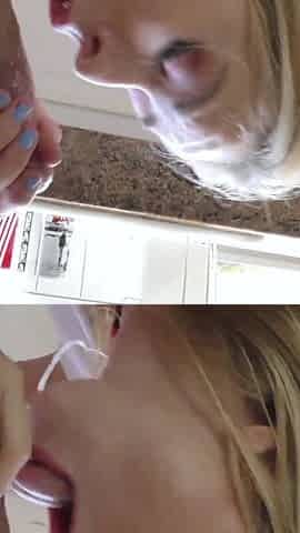 Bimbo cheerleader teenager sucks her senior neighbor\u2019s cock dry