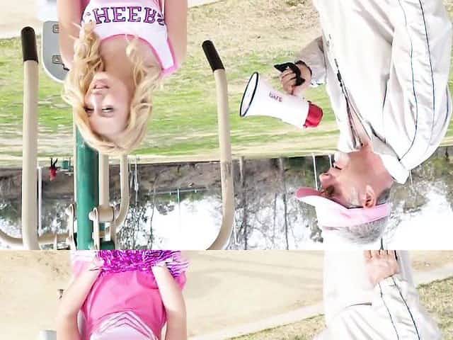 Upset cheerleader Ashlyn Rae getting her tight pink stuffed