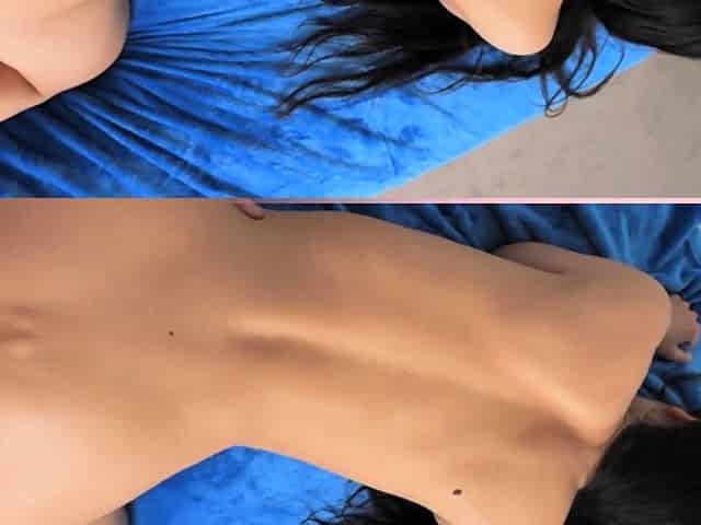 Thin Asian man fucks his stunning girlfriend in lingerie while the camera rolls.