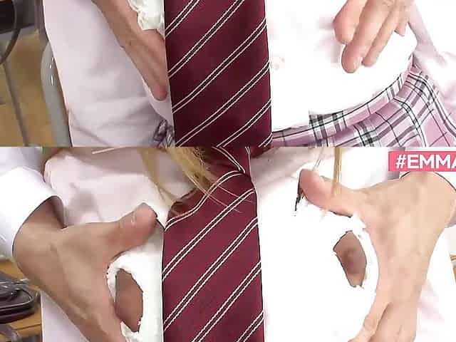 Brunette Chinese slut in college girl uniform gives sloppy head