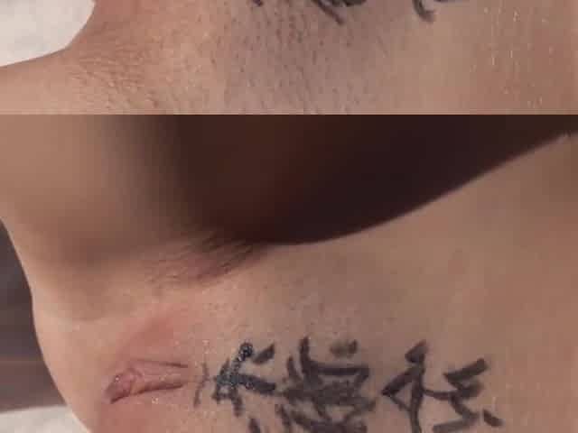 Writing Chinese On Her Stomach And Masturbate