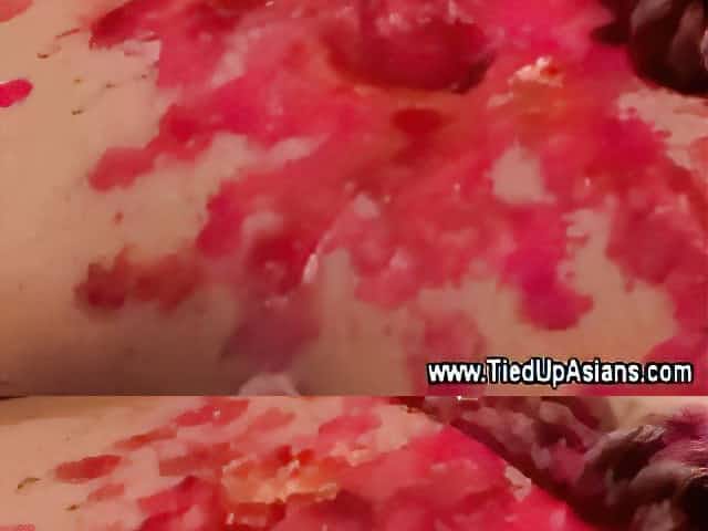Desperate asian whore gets body covered in wax