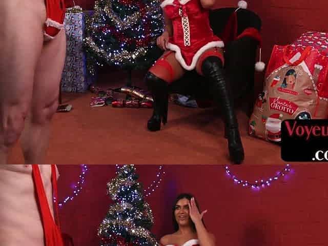 Xmas voyeur beauty teasing lucky lad