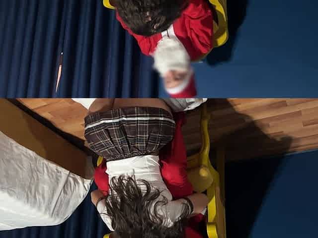 Christmas Elf Has Fun with Her Wet Pussy While Santa Can't See.