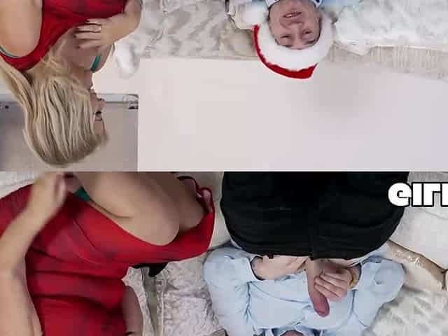 Stepsis and bestie share stepbro his large dong on Xmas morning