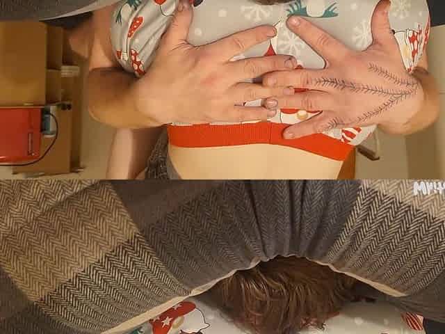 Fat Step Mommy Mature Wife gets naked boobs. Christmas Edition.