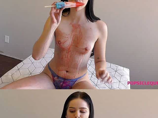 Alix Lynx sucks on a huge candy cane for Xmas & swallows a big load!