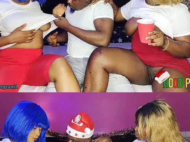 Ebony honey gets banged by ebony Santa!