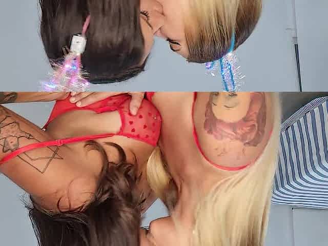 2 breasty tattooed ladies have some holiday pleasure on the Tremor