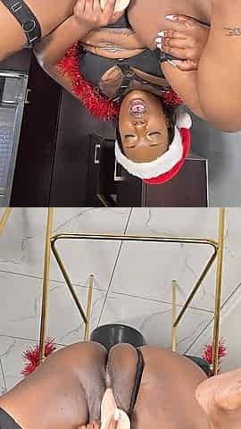 Ebony Teen's Solo Fun in the Bathroom Over Christmas