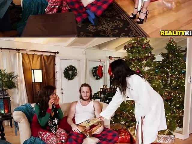 Two Beautiful Young Babes Fucked By The Christmas Tree - Kenna James, Johnny Castle And James Castle