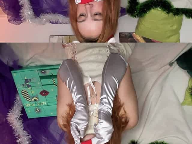 The Cute Girl in Christmas Cosplay Uses Her Tongue so Eroticly That She Can't Help but Suck on Her Pussy. Amateur. Creampie