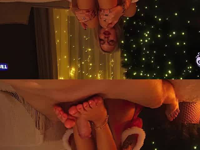 PLAYING WITH MY FEET AND SNATCH BELOW THE CHRISTMAS TREE
