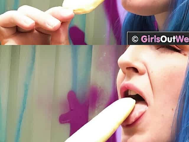 Hot Purple Hair 18 Year Old With Huge Natural Tits Rubs Her Pussy