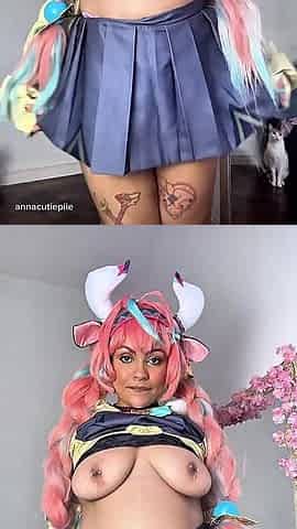 Cute Chubby Varessa Cosplayer Striptease Massive Farts in Mini Skirt Then Naked