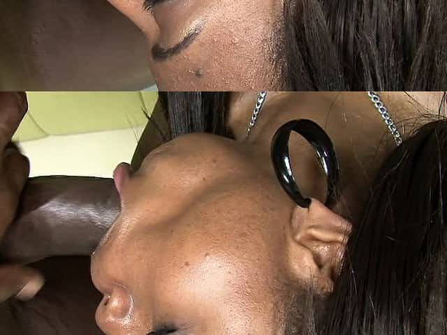 Chubby ebony Mone Divine tries to suck his big prick, then fucks him