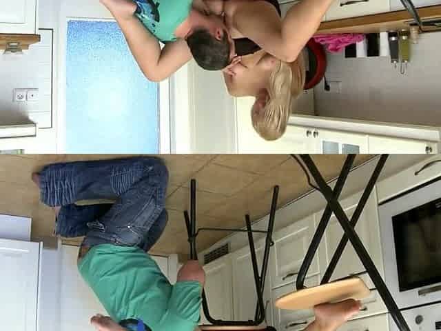 Fat golden-haired Helen screwing in the kitchen
