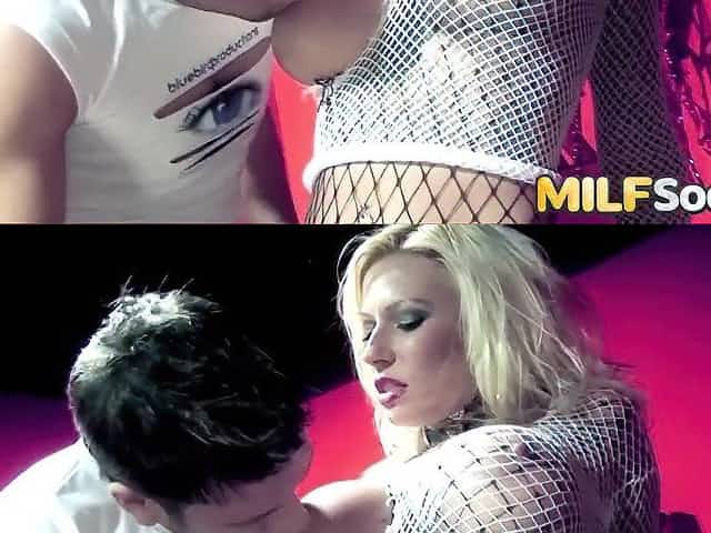 Chubby blonde Angel Wicky wearing nylon stockings gets fucked