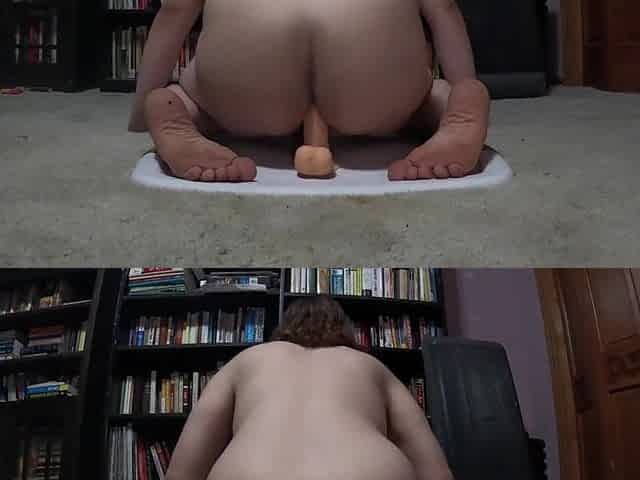 Overweight male is curious what bouncing on sex toy feels like!