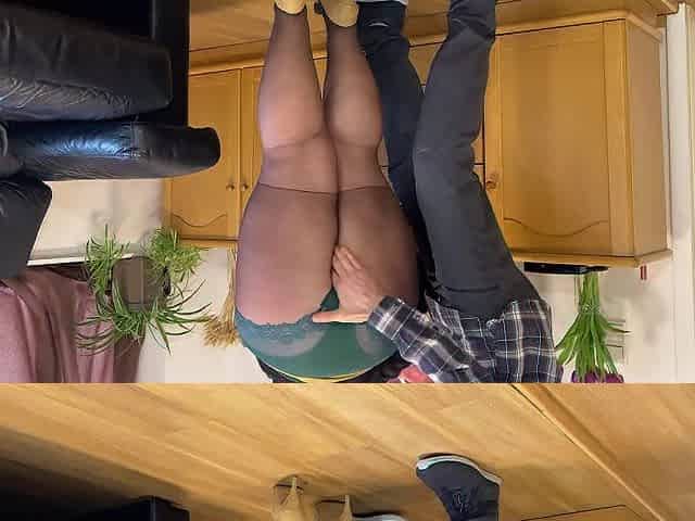 Curvy mother-in-law in a new leather skirt masturbates my cock