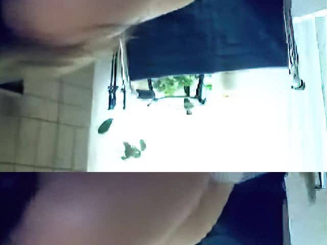 Chubby girl masturbates with a toothbrush on a chair in the bathroom