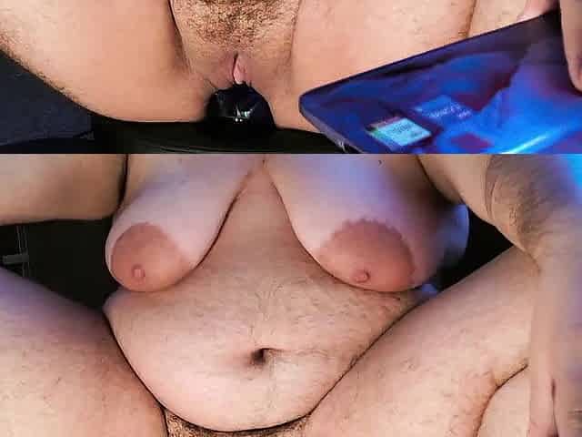 fat shaggy cunt twerk and masturbates with giant sex tool