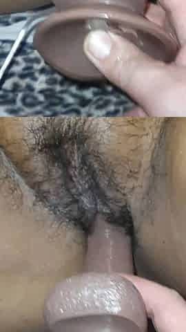 fat shaggy cunt twerk and masturbates with giant sex tool