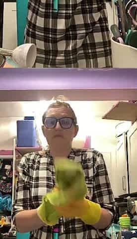 ORDER! Wearing rubber gloves to wash clothes topless