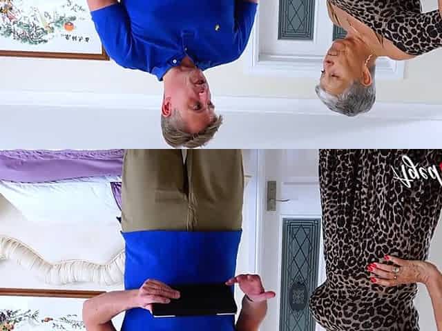 Masturbating mother in law gets fingered and gets her ass fucked while standing doggy style