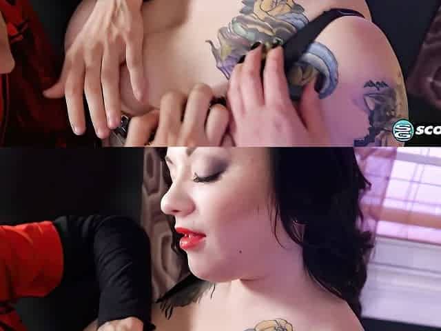 Sweet chubby saggy-boobed tattooed girl screwed by big dick