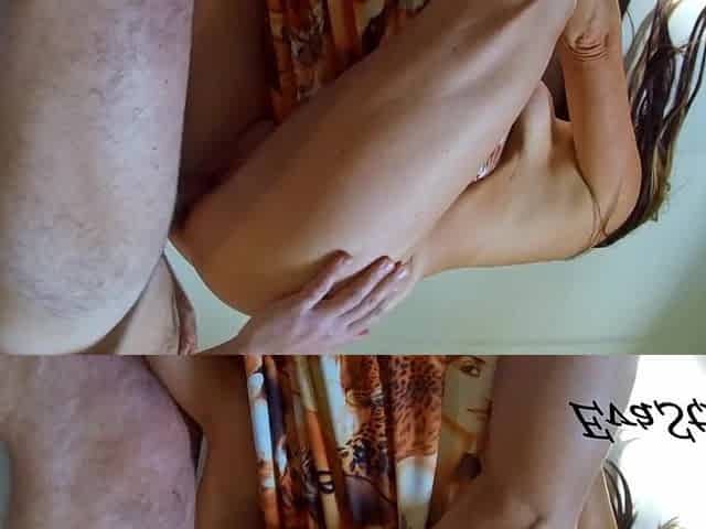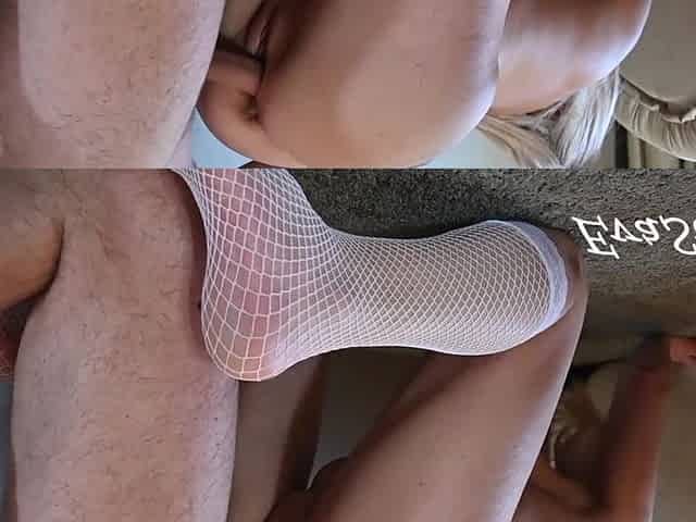beautiful blond in a doggystyle and the air coming without the snatch at the end