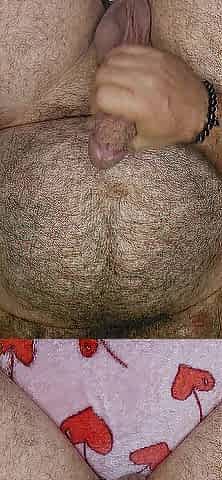 Corpulent hirsute bear works out his shlong and lets off thick load
